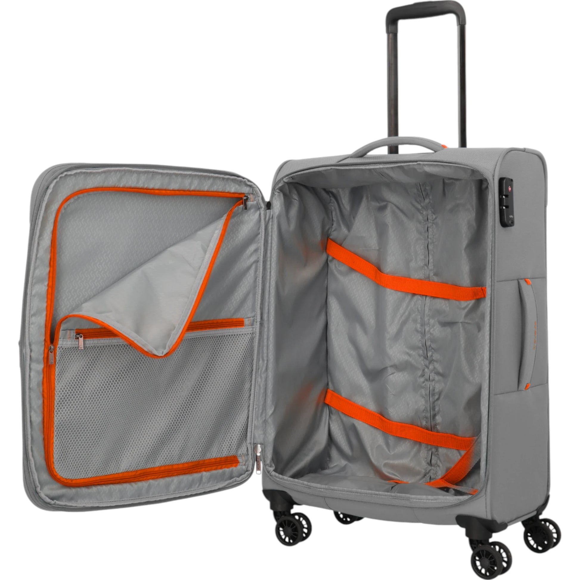 Der travelite Umbria 4-Rollen-Koffer M 67 cm bietet dir die Flexibilität, unterwegs zu entscheiden, wie viel Platz du benötigst. Mit einem arretierbaren Teleskopgestänge, vier stabilen Doppelrollen und einer praktischen Dehnfalte kannst du das Volumen nach Bedarf erweitern. Das durchdachte Design umfasst ein separates Wäschefach, ein TSA-Kombinationsschloss und ergonomische Tragegriffe für komfortables Reisen.